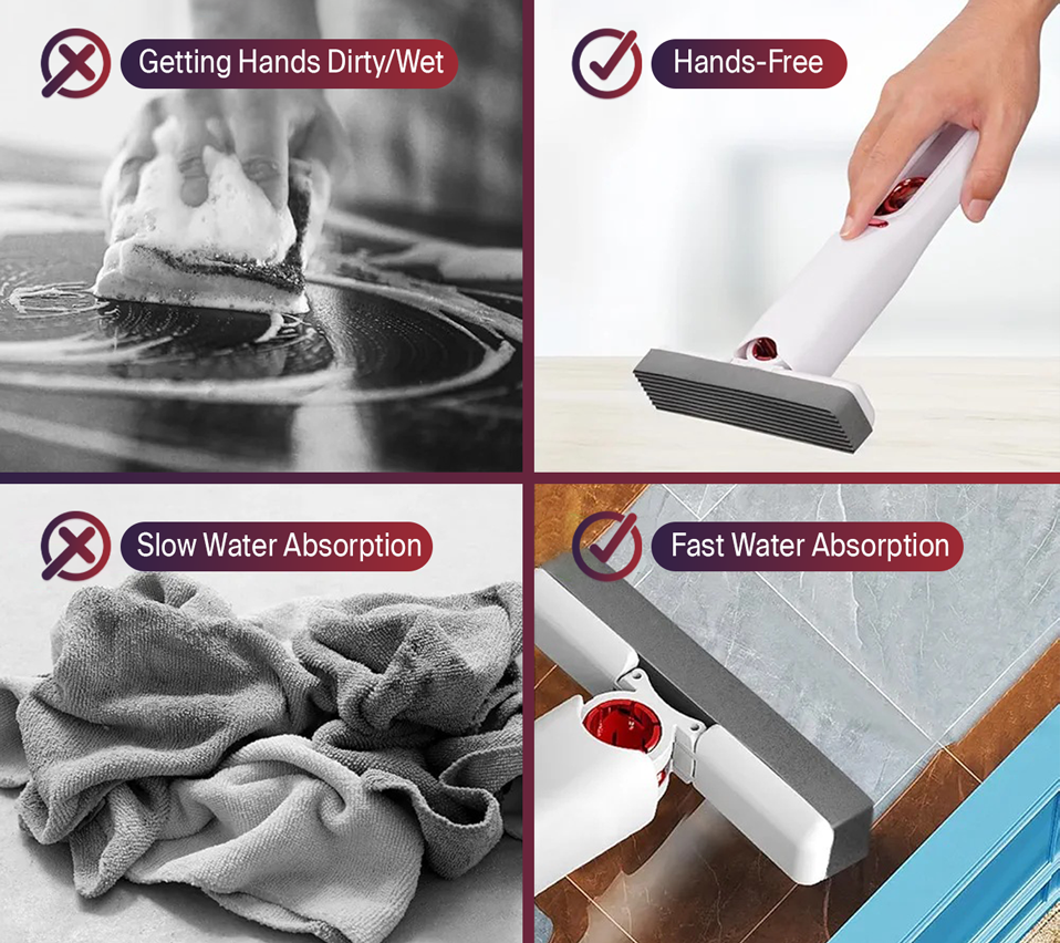 With FlexSwipe™ Foldable Sponge Mop, you’ll never touch dirty water again. Its hands-free squeeze mechanism keeps your hands clean and dry while delivering powerful cleaning performance.