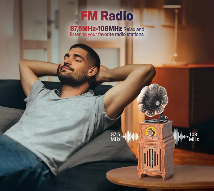 Relax and tune in with EchoMuse™ Vintage Bluetooth Speaker’s built-in FM radio. Covering 87.5MHz–108MHz, it lets you enjoy your favorite stations with warm analog-style sound. Whether you're winding down or starting your day, EchoMuse™ brings the golden age of radio back to life.